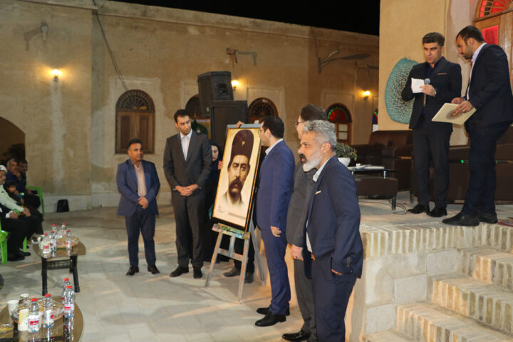 در بخش انتهایی برنامه، یک گفت و گوی دونفره با سرپرست گروه پژوهشی – رسانه ای “نخل و برنو” در خصوص واقعه نبرد ریشهر و شهادت احمدخان تنگستان و همرزمانش اجرا شد و همچنین برای اولین بار از تمثال بزرگ احمدخان تنگستانی، کار هنرمند اهرمی آقای احسان عمرانی، رونمایی شد.